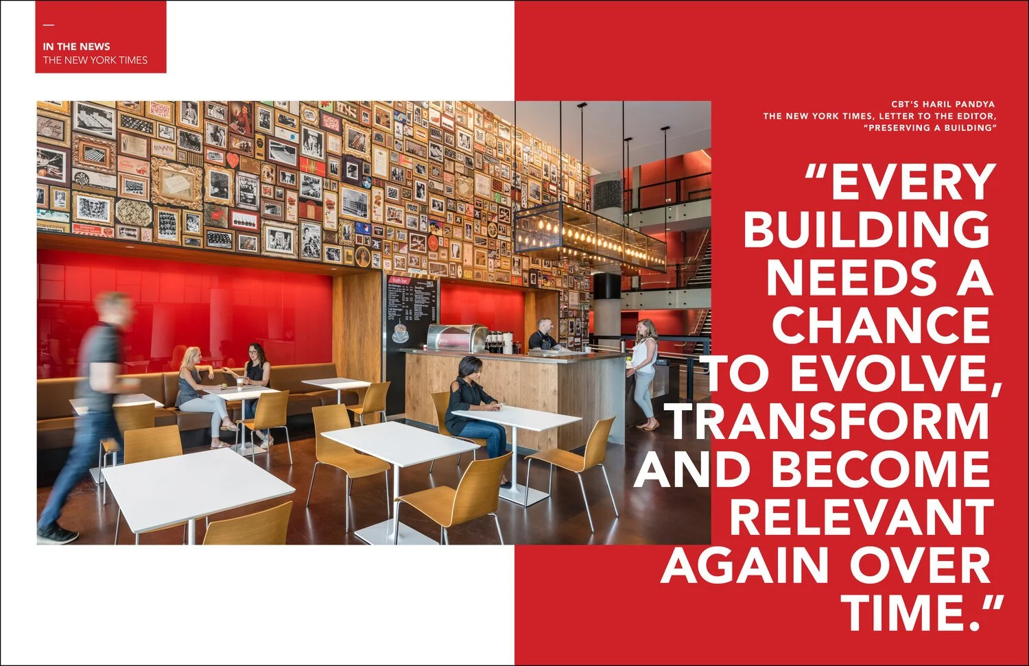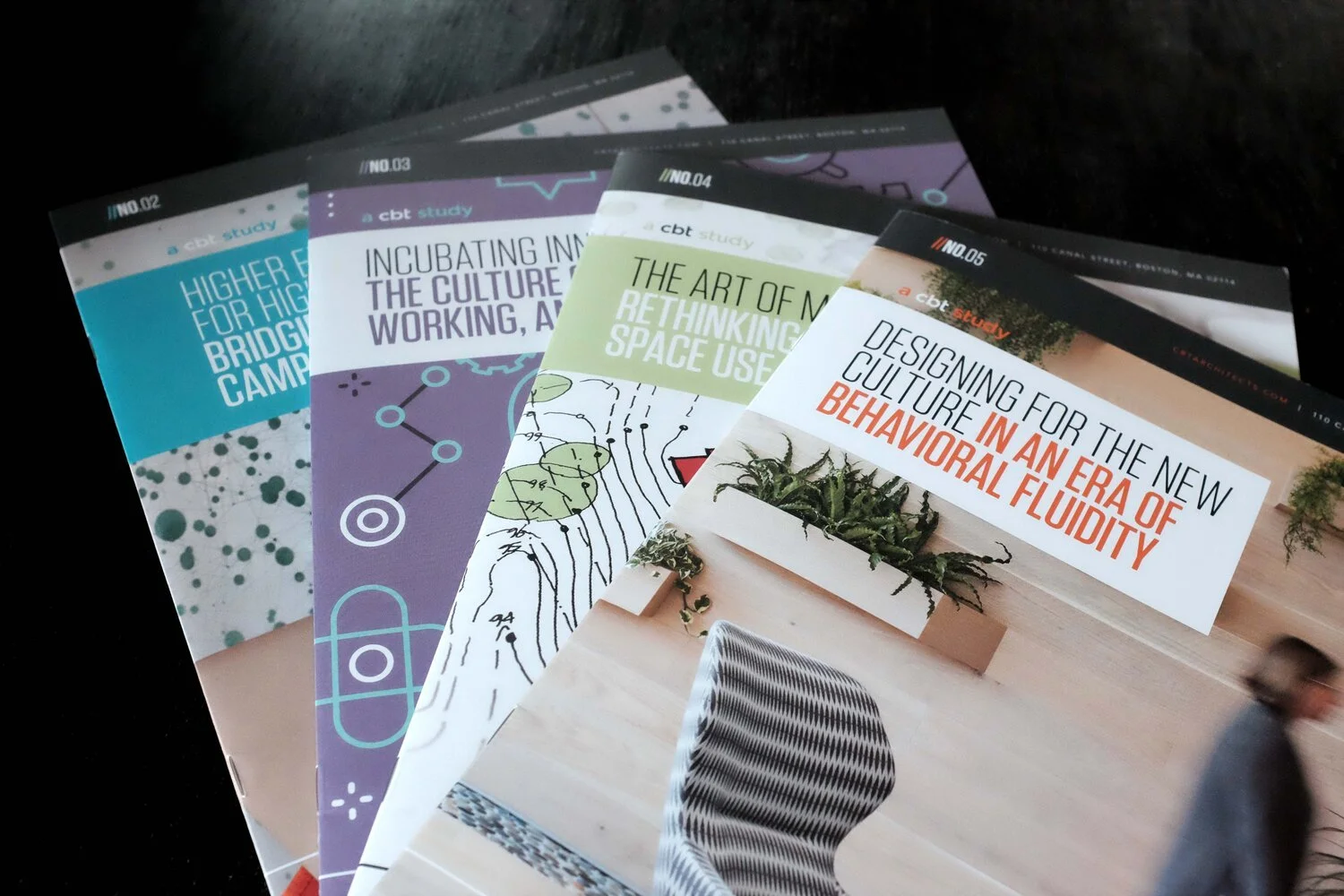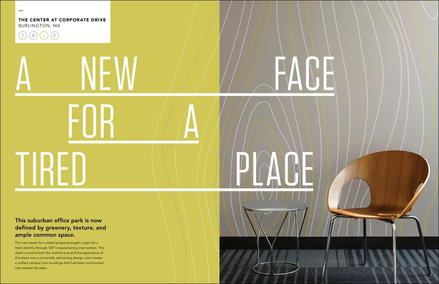 A marketing brochure designed for the Asset Strategy and Repositioning team at CBT showcasing projects, articles, and design methods.